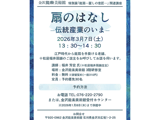 1月9日 金沢能楽美術館 特別展「能扇ー麗しの意匠ー」関連講座のお知らせ
