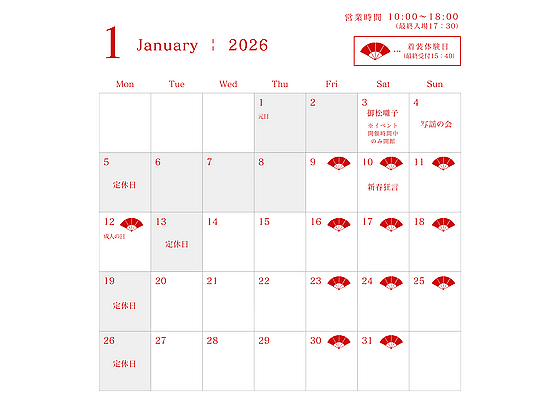 1月9日 金沢能楽美術館 1月着装体験スケジュールのお知らせ