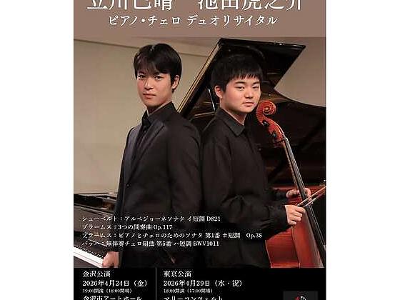 1月10日 金沢市アートホール 立川己晴 池田虎之介 ピアノ・チェロ デュオリサイタル