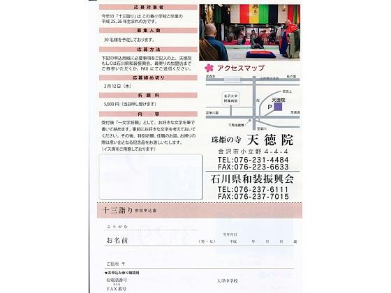 1月16日 珠姫の寺 金龍山 天徳院 十三詣りの参加申込書