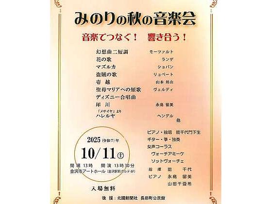 9月9日 金沢市アートホール みのりの秋の音楽会