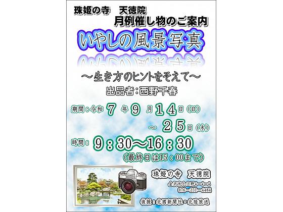 9月12日 珠姫の寺 金龍山 天徳院 月例催し物のご案内