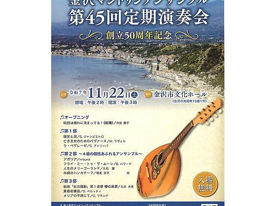 10月24日 金沢市文化ホール 金沢マンドリンアンサンブル 第45回定期演奏会(創立50周年記念演奏会)