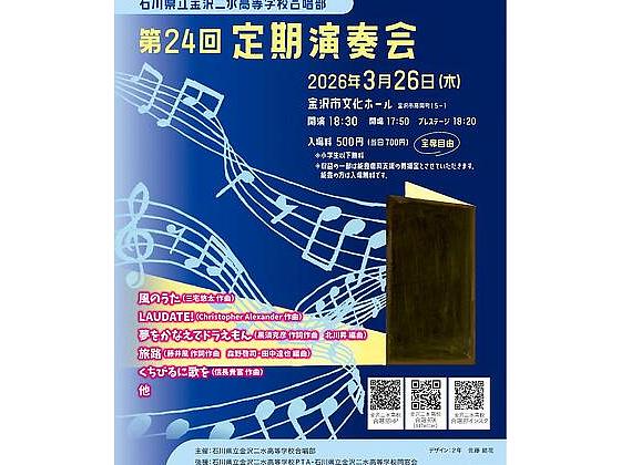 1月22日 金沢市文化ホール 金沢二水高等学校吹奏楽部 SPRING CONCERT 2026