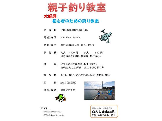 2014年10月14日 親子釣り教室のお知らせ